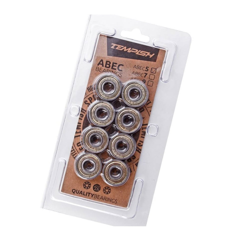 Łożyska do rolek TEMPISH Carbon ABEC-5 – zestaw 8 sztuk standardowych łożysk węglowych ABEC 5. Zamknięte, uszczelnione po obu stronach.
