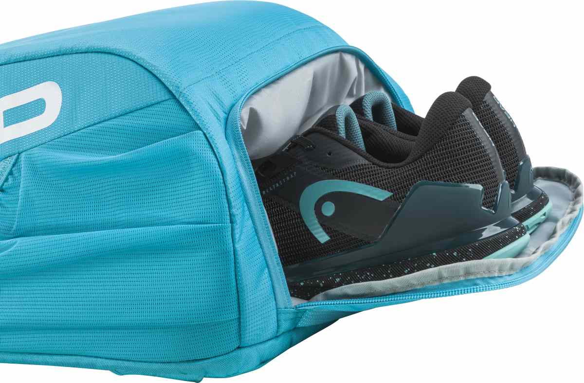 Przyciągaj spojrzenia na kortach i nie tylko dzięki TOUR BACKPACK 25L. Plecak wyróżnia się wyrazistym wzornictwem i nowymi materiałami premium. W nowej wersji jest też bardziej funkcjonalny — zewnętrzna kieszeń na telefon zapewnia łatwy i szybki dostęp do smartfona. Plecak ma dwie przegrody główne, dwie zewnętrzne kieszenie na butelki na wodę lub puszki piłek oraz przegrodę na buty umożliwiającą oddzielenie obuwia od reszty wyposażenia. Pomieści do dwóch rakiet. Plecak HEAD Tour Backpack 25L blue jest sprzedawany w opakowaniu z plastiku z recyklingu, a jego metkę wykonano z przetworzonego papieru i przywiązano ekologicznym sznurkiem konopnym — to przykład na to, jak HEAD stara się ograniczyć zużycie plastiku.