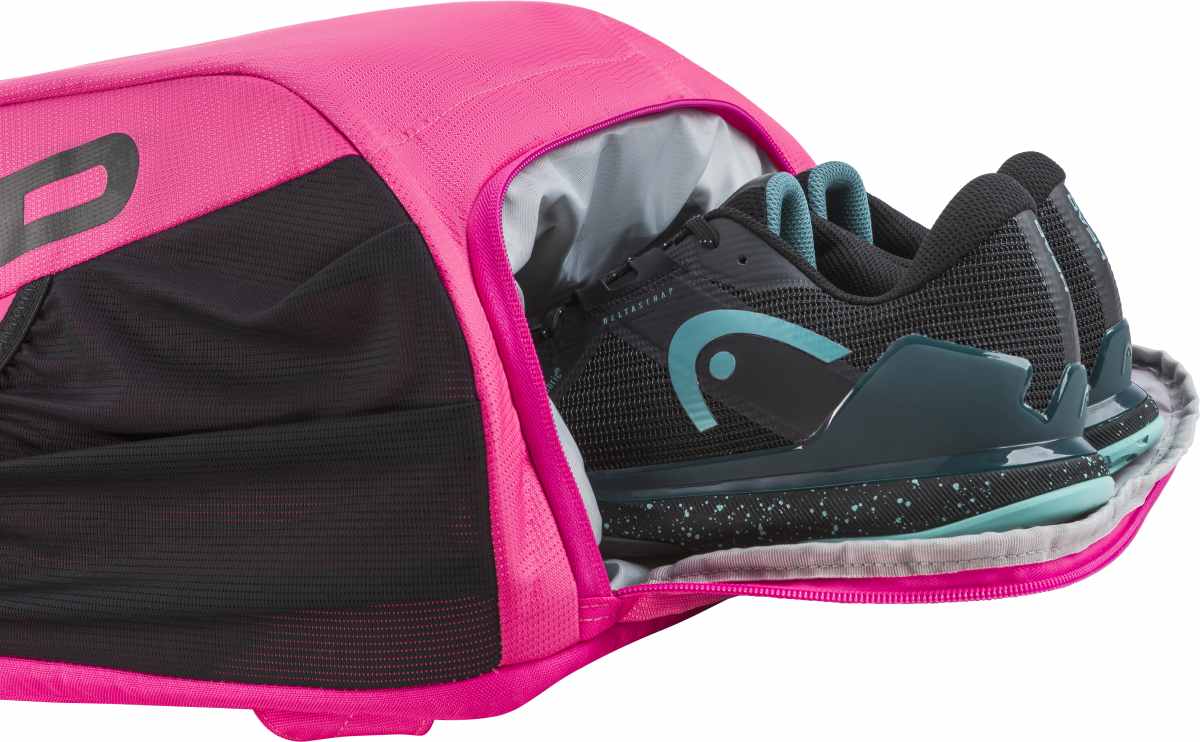 Przyciągaj spojrzenia na kortach i nie tylko dzięki TOUR BACKPACK 25L. Plecak wyróżnia się wyrazistym wzornictwem i nowymi materiałami premium. W nowej wersji jest też bardziej funkcjonalny — zewnętrzna kieszeń na telefon zapewnia łatwy i szybki dostęp do smartfona. Plecak ma dwie przegrody główne, dwie zewnętrzne kieszenie na butelki na wodę lub puszki piłek oraz przegrodę na buty umożliwiającą oddzielenie obuwia od reszty wyposażenia. Pomieści do dwóch rakiet. Plecak HEAD Tour Backpack 25L pink jest sprzedawany w opakowaniu z plastiku z recyklingu, a jego metkę wykonano z przetworzonego papieru i przywiązano ekologicznym sznurkiem konopnym — to przykład na to, jak HEAD stara się ograniczyć zużycie plastiku.