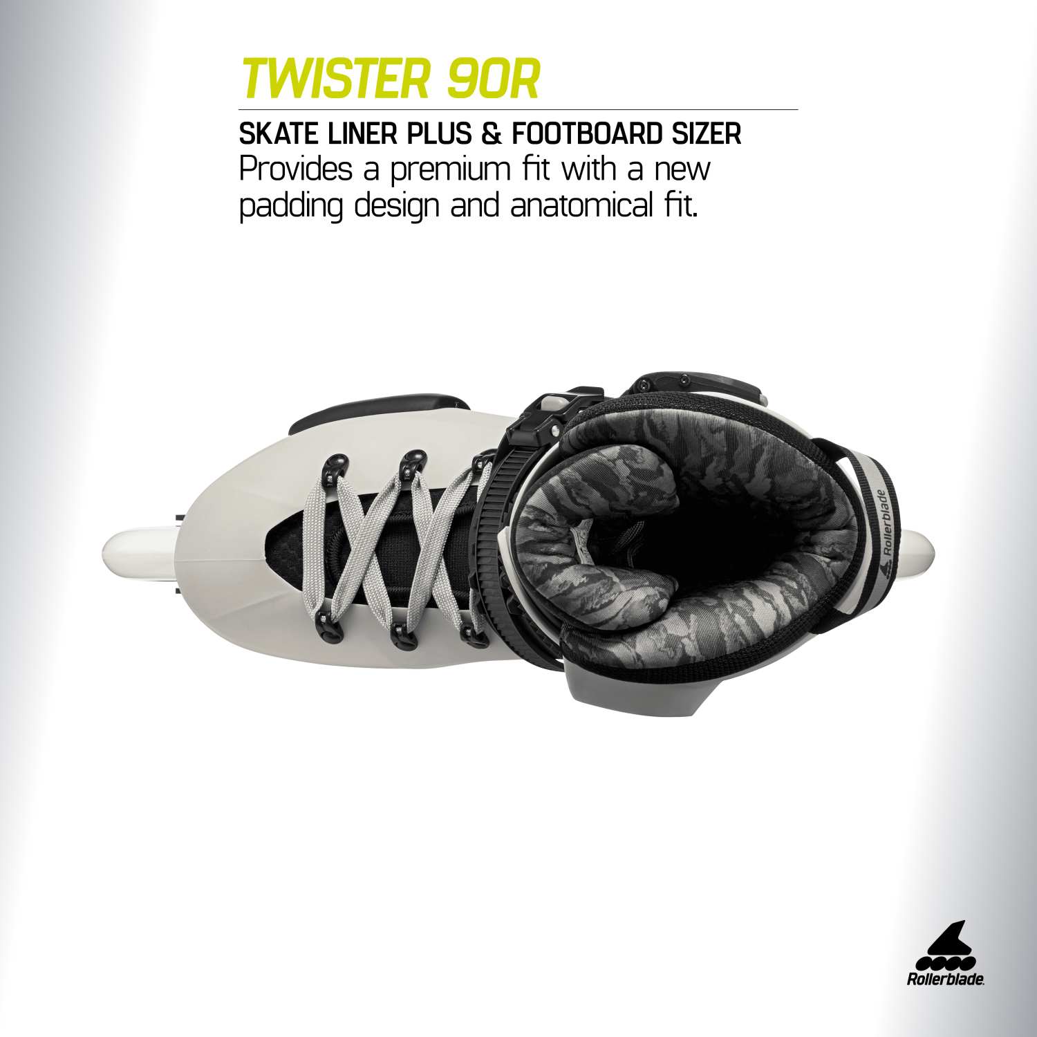 - SKATE LINER PLUS & FOOTBOARD SIZER – Zapewnia doskonałe dopasowanie dzięki nowej konstrukcji wyściółki i anatomicznemu dopasowaniu. Perforowana siateczka w przedniej części buta zapewnia oddychalność, a lycra w obszarze palców zapewnia komfort w okolicy palców. Język Comfort Flex z amortyzowanymi skrzydełkami i wzmocnioną środkową częścią zapewnia lepszą elastyczność i kontrolę. Footboard Sizer pozwala na uzyskanie ciaśniejszego dopasowania lub większej przestrzeni w rolkach.