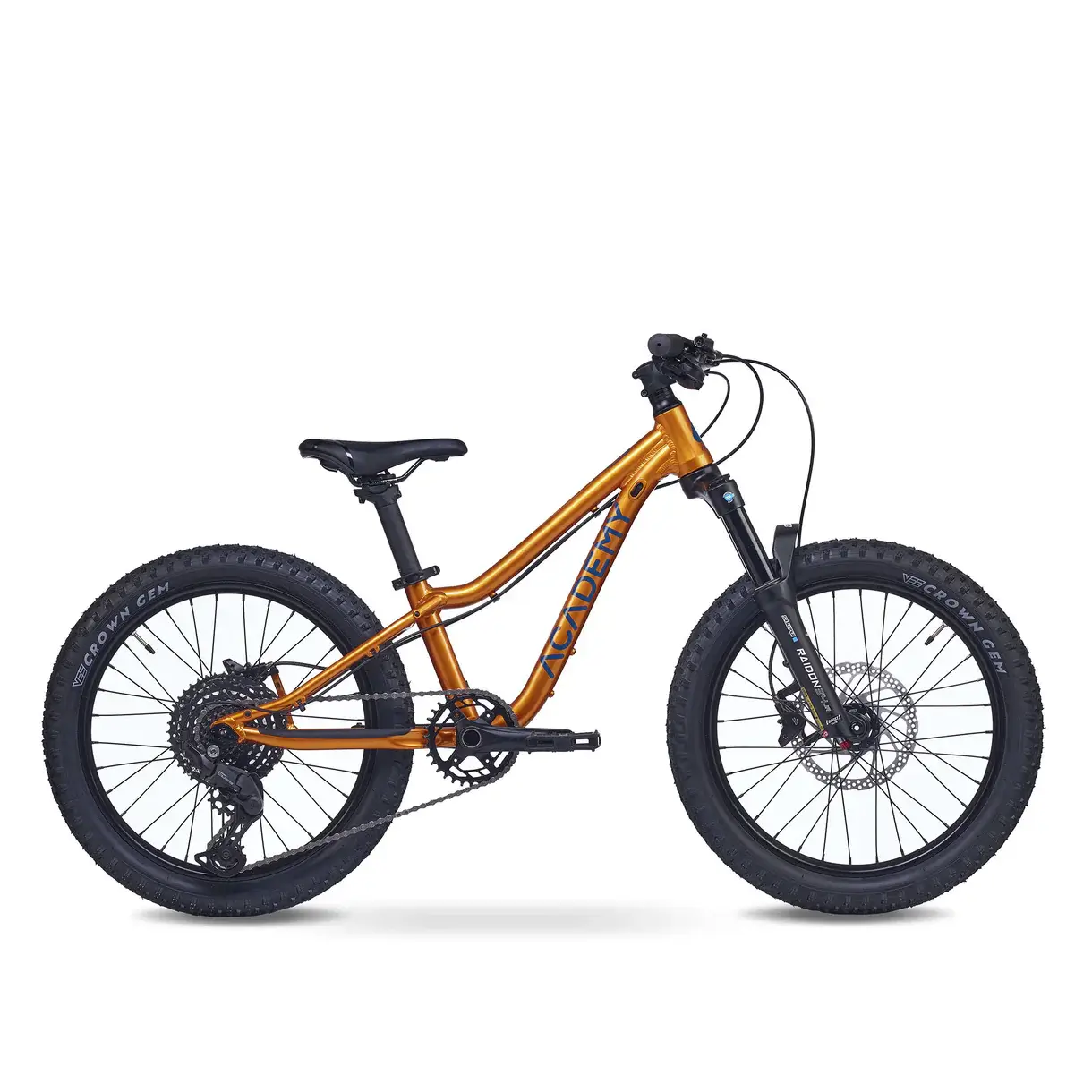 Rower Academy S-GRADE Trail 4 Amber to ultralekki rower górski MTB dla dzieci (koła 20 cali), zaprojektowany do jazdy trailowej, leśnych ścieżek i szutrów. Z wagą około 10,7 kg łączy ergonomię z wydajnym napędem Shimano CUES i hydraulicznymi hamulcami, idealny dla młodych odkrywców w wieku 6-8 lat (wzrost 115-130 cm).